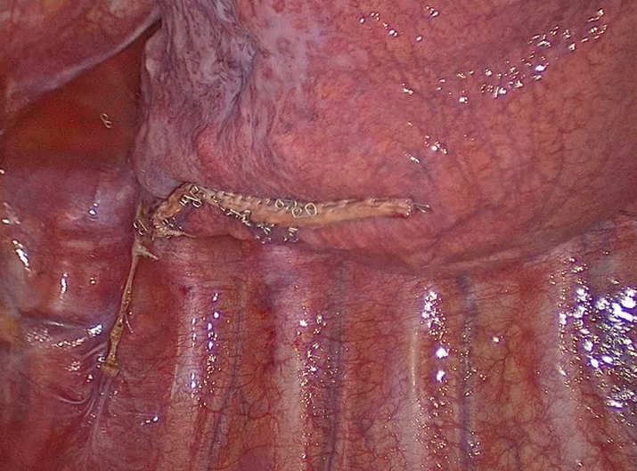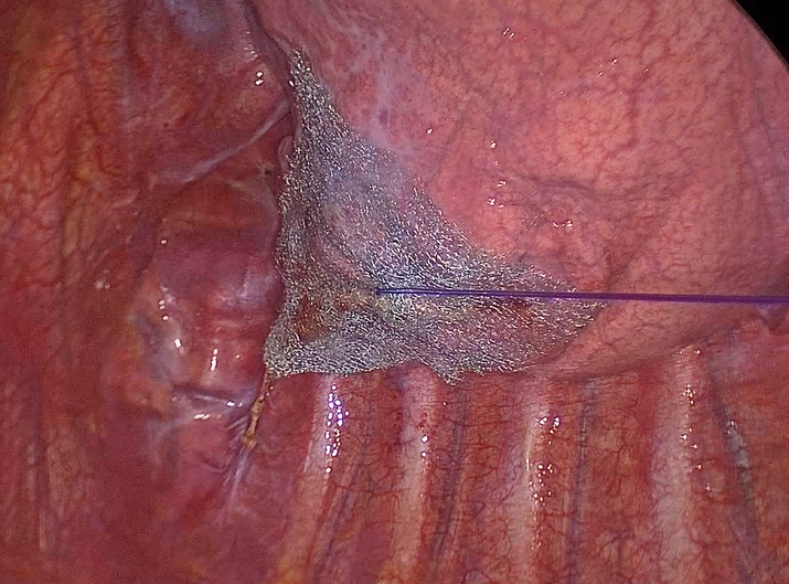 再発の原因として、ブラ切除部や縫縮部の近傍や下葉の頂部に新しいブラができることが知られています。日本国内で実施された全国調査では、原発性自然気胸に対する手術例の約75%で再発予防処置が行われています。その多くは1種類の吸収性シートが用いられていますが、当科ではより術後再発が少ないとされる特徴の異なる2種類の吸収性シートを使った2重カバリング(dual covering)をブラ切除部や縫縮部だけではなく下葉の頂部にも行っています。