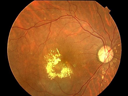 放置すると中心暗点が拡大し、視力が低下します。