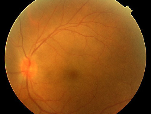 黄斑は物を見るために最も大切な網膜の中心部にあり、文字を読んだり、顔を認識したり、色を感じたりする視力の中心となる部分です。