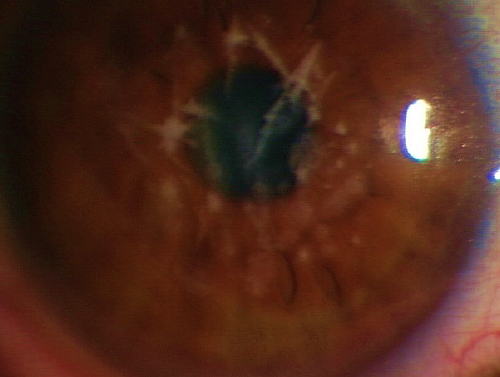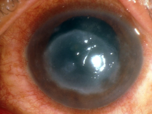 進行すると混濁して水疱性角膜症になります。
