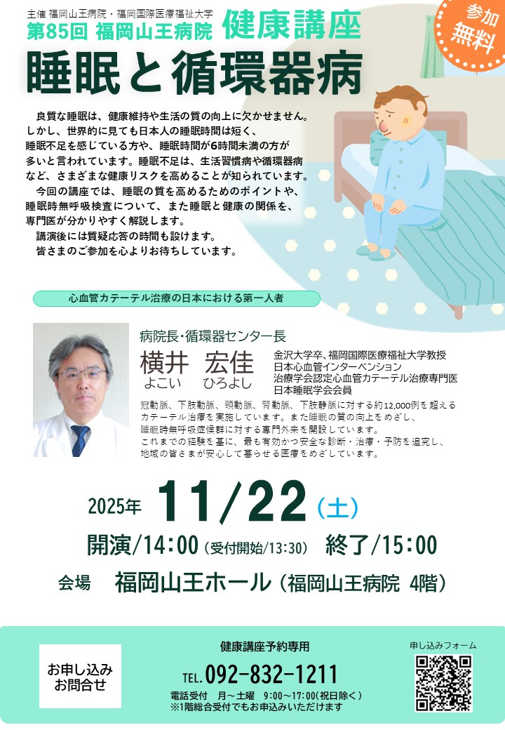 11月22日(土)に第85回福岡山王病院 健康講座「睡眠と循環器病」を開催します。